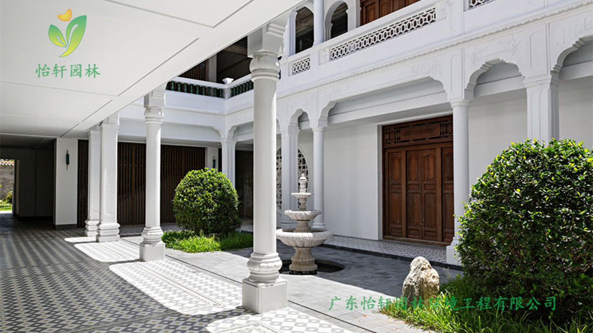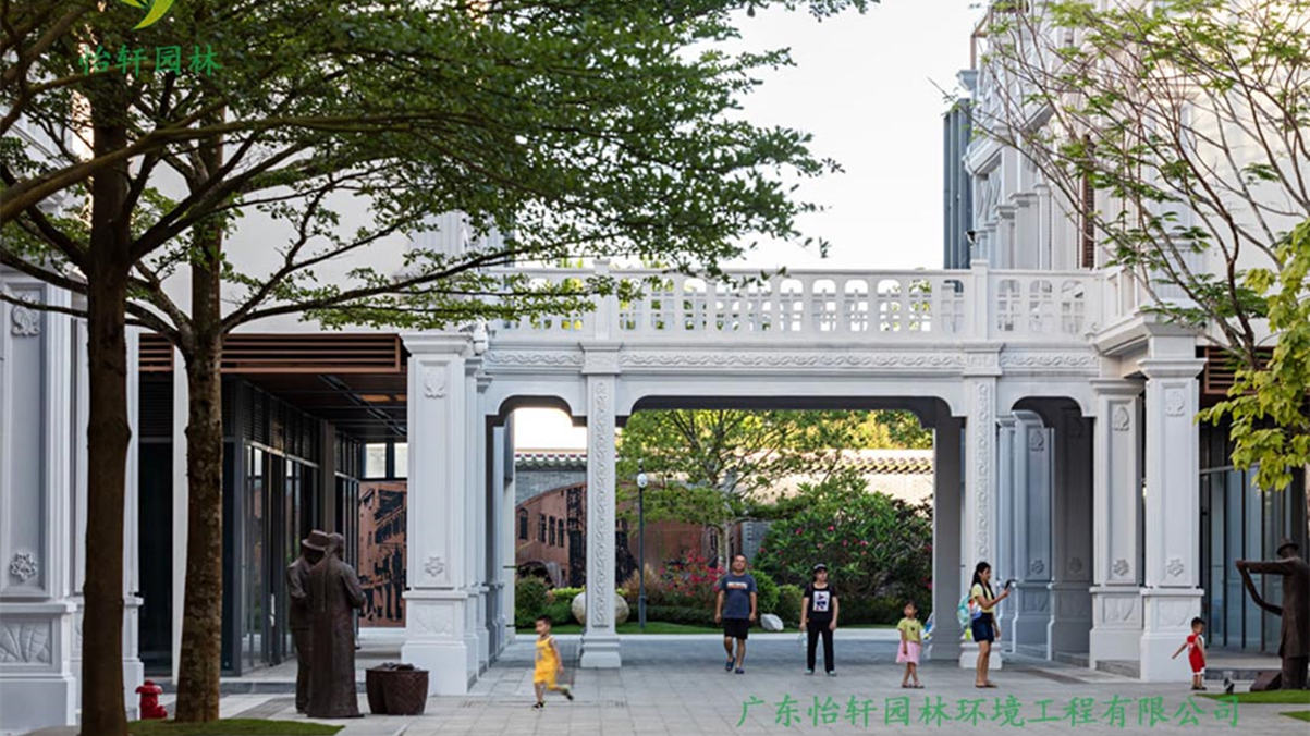 广东怡轩园林绿化公司通过“村头一棵树”点景榕树、雨树树阵、文化牌楼等景观元素,铺陈文化中轴的景观序列,营造南洋美丽汇核心精神轴线。南洋古街上的特色酒店在建筑元素上沿用了海南传统老宅——陈家宅、符家宅、韩家宅、林家宅的部分元素,复刻其精华,这是对前辈的致敬,也是文化的再生。文化融汇中西,应承了南洋文化荟萃致辞,南北内街一脉相承,又进行传统和现代的呼应,简约时尚的建筑主基调,商业外墙挂着形制考究的南洋风情招牌,地面上设置的文化地雕及特色花砖,街头巷尾的情景雕塑及景观装置,就像是把历史上有关南洋的美好凝固成了画片,缕缕南洋情怀浮上心头……灯火通明的街道,来来往往的人群,展示一幅安居乐业的生活画面。扬帆广场以南洋船和灯塔为主景,营造扬帆起航的意境。